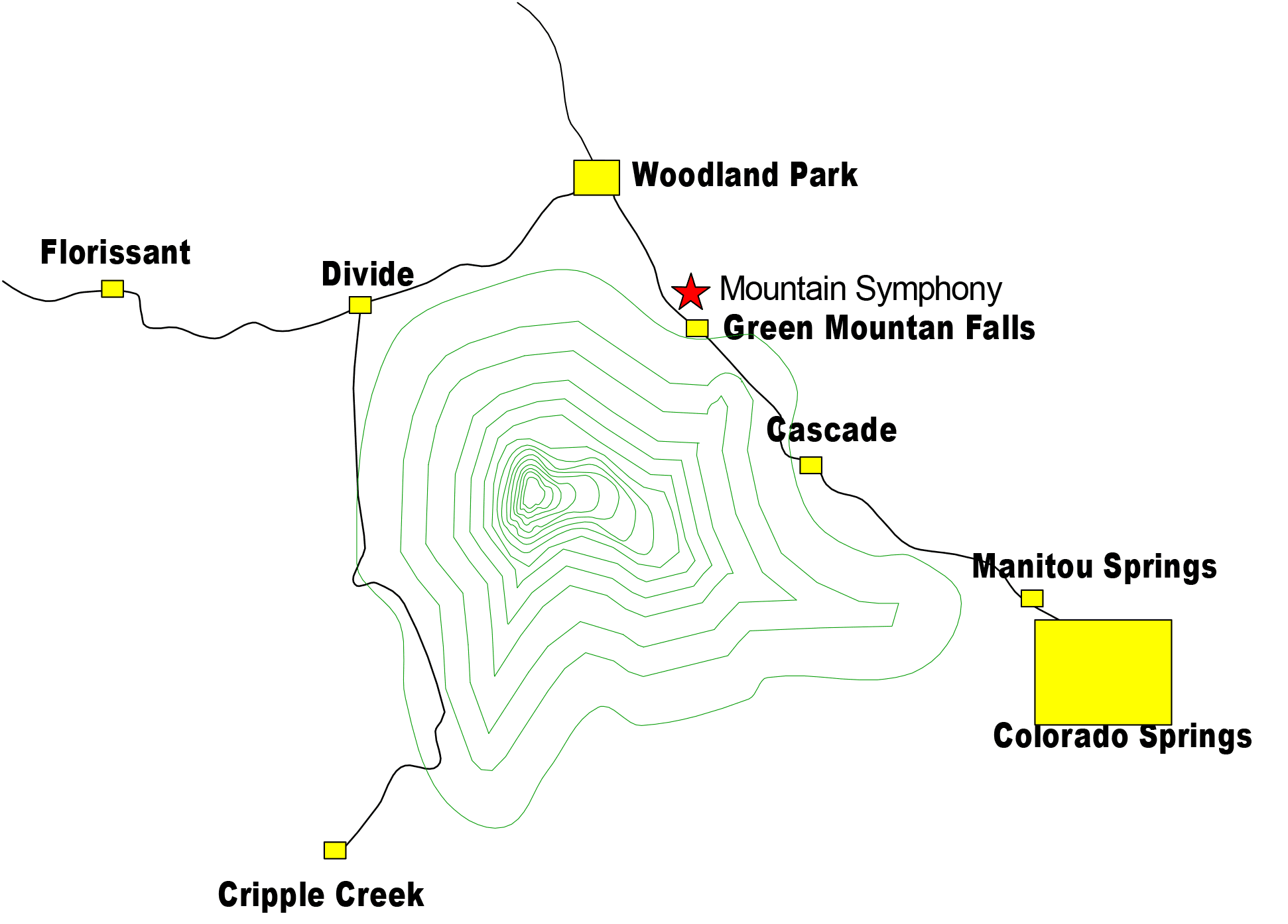 The region begins in Colorado Springs and extends west through the Red Rocks, Manitou Springs and up Ute pass on highway 24 circling around Pikes Peak to the gold mining town of Cripple Creek, approximately 50 miles. With the exception of a couple day trips to river rafting and hot springs, Trout Creek Estate, in the